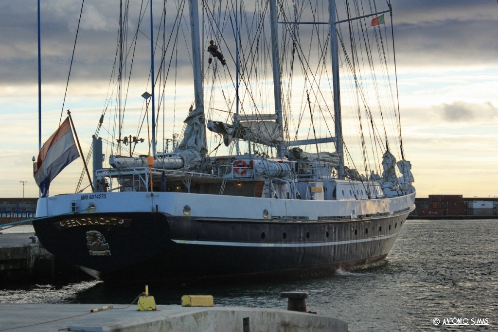 A Escuna de três mastros "EENDRACHT", em estadia no caís de cruzeiros Portas do Mar, porto de Ponta Delgada ontem dia 1 de Março. Foi construído pela Fundação