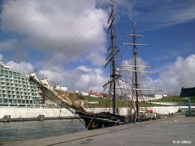 Navio escola alemão, "Roald Amundsen", atracado ontem no porto Pipas em Angra do Heroísmo. Este navio de treino opera habitualmente no Báltico e Mar do Norte na época de Verão, e Mediterrâneo e Atlântico no Inverno. É propriedade e operado por uma organização sem fins lucrativos, LebenLernen auf Segelschiffen e.V., tendo como base o porto de Eekernford, Alemanha. Construído em 1952, como navio de pesca, foi convertido em navio escola em 1992, ostenta o nome em homenagem ao explorador norueguês, Roald Amundsen.