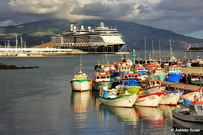 Mais um excelente registo fotográfico da autoria do nosso Amigo António Simas, relativo à escala ontem no porto de Ponta Delgada do navio de cruzeiros, "Nieuw Amsterdam", da operadora Holland America Line.
