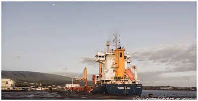 Registo da escala do graneleiro "CATALINA D" no porto da Praia da Vitória, onde se encontra para descarga de 6.800 toneladas de cevada para rações, oriundas do porto de Portbury no Reino Unido. Repartem a carga em dois lotes iguais os recebedores TERCEIRENSE RAÇÕES e UNICOL.