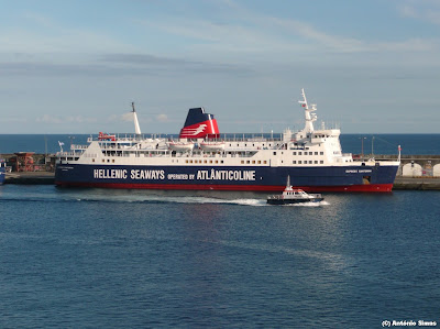 Com as sempre belas fotos do Amigo, António Simas, este blog dá as Boas Vindas ao ferry "Express Santorini", que chegou a Ponta Delgada, dia 22 de abril, para com a devida antecedência preparar mais uma operação ferry nos Açores, ao serviço da Atlânticoline. Tal como nos anos anteriores, esperamos uma operação tranquila, dentro daquilo que os ferrys da Hellenic Seaways nos habituaram.
