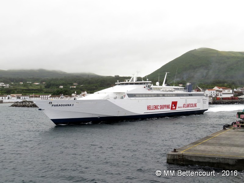 Registo da antecipada estreia do HSC "Paraguana I", hoje no porto da Graciosa. O navio só inicia a sua operação no próximo dia 9, contudo está hoje a efectuar uma viagem teste entre os 4 portos previstos no seu itinerário que são, Ponta Delgada, Praia da Vitória, Graciosa e Santa Maria.