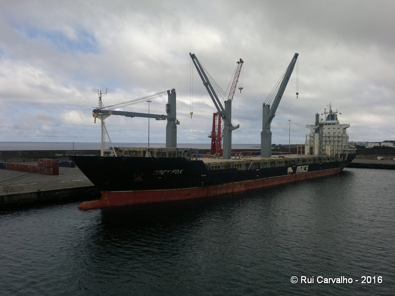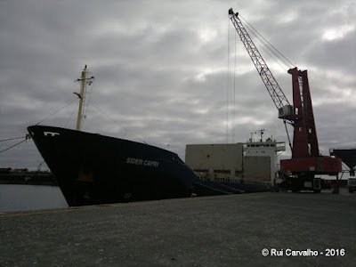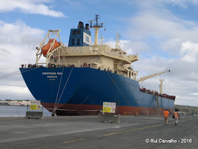 Fotos da descarga de 5.100 toneladas de cevada embarcada no N/M "AMBER SPIRIT" que se estreia no porto da Praia da Vitória. Este produto embarcado no porto inglês de Southampton destina-se à fabricação de rações para animais pelas fábricas UNICOL e Terceirense Rações.