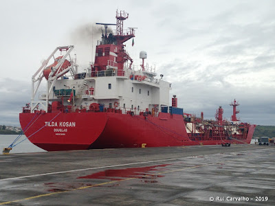 Depois das visitas este ano dos N/T "CORAL LOPHELLIA" (ver aqui) e N/T "GAS ALICE" (ver aqui) registamos mais uma estreia no porto da Praia da Vitória com a escala do N/T "TILDA KOSAN". Numa viagem com escalas em três portos dos Açores, este navio descarrega um lote de gás de petróleo liquefeito para o recebedor TERPARQUE e que se destina a consumo doméstico e industrial na Ilha Terceira.